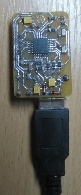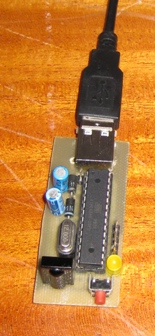 Первый вариант печатной платы практически повторяет авторскую, за исключением двух моментов: Применены более "удобные" для SMD монтажа компоненты типоразмера 1206 при сохранении "оригинальных" размеров PCB. На плате установлен разъём USB-A (мама, как в компьютере) вместо авторского USB-B ("мама", как в принтере). Вследствие чего используется более дешёвый шнур USB-A - USB-A (на обоих концах шнура стандартный разъем USB-A "папа").