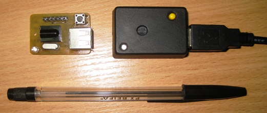 Четвёртый вариант печатной платы рассчитан только на SMD компоненты. Из обычных элементов используются лишь фотоприемник, светодиод, диоды и кнопка управления. Благодаря малым габаритами (21 мм. х 43 мм.) устройство внешне похоже на обычную флешку. На плату данного варианта возможна установка разъёма USB-A как "мама", так и "папа". Причем, если предполагается напрямую включать устройство в USB порт компьютера, то со стороны печатных проводников устанавливается разъём "папа" для поверхностного монтажа. Если предполагается подключать device через шнур USB-A - USB-A, то со стороны монтажа компонентов устанавливается стандартный разъем "мама". Обратите внимание, что кнопка управления используется в этом варианте платы в качестве перемычки, поэтому без установки кнопки на плату устройство работать не будет.