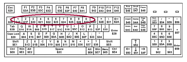 Внешний вид пульта дистанционного управления с обозначением имитируемых кнопок USB-клавиатуры приведен на рисунке. Ниже приведена таблица соответствия названий кнопок пульта генерируемому коду и коду клавиш.