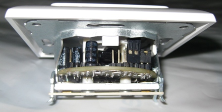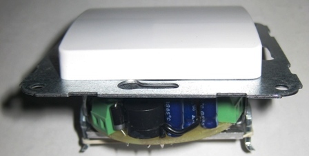 Конструктивно изготовленная печатная плата устанавливается в стандартную заглушку-выключатель, предназначенную для монтажа в коробку диаметром 60 мм. и более.