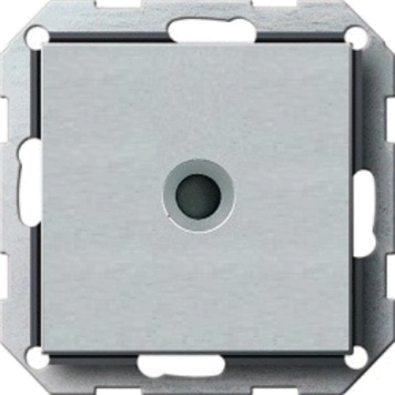В верхней части заглушки под имеющейся псевдоклавишей размещается изготовленная из стеклотекстолита толщиной 0,5 мм. печатная плата или металлическая пластина, которые будут выполнять роль сенсорного контакта при прикосновении к которому будет выполняться заранее настроенное действие. В центре платы выполнено отверстие диаметром 15 мм. через которое ИК-излучение пульта дистанционного управления будет проникать к встроенному фотоприёмнику. Если псевдоклавиша изготовлена из непрозрачного для ИК-излучения пластика, то необходимо вынести фотоприёмник за её пределы либо просверлить отверстие, которое в дальнейшем будет закрыто прозрачным пластиком. Например можно сделать из заглушки Gira вот такой сенсорный выключатель...